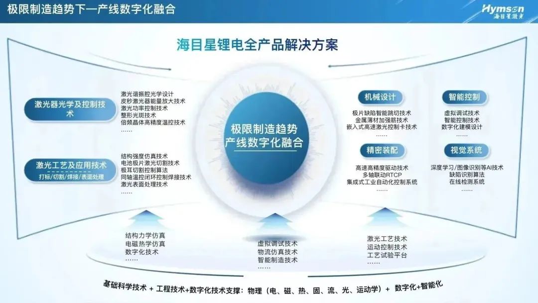 對此,海目星激光的應對策略是,打造極限制造下的整線產(chǎn)品矩陣,拓寬產(chǎn)線數(shù)字化融合邊界,深入極限制造下的基礎研發(fā)平臺研發(fā)。最終實現(xiàn)極高的質(zhì)量要求、極高的生產(chǎn)良率、極限的生產(chǎn)成本、極快的生產(chǎn)效率、極高的生產(chǎn)穩(wěn)定性。