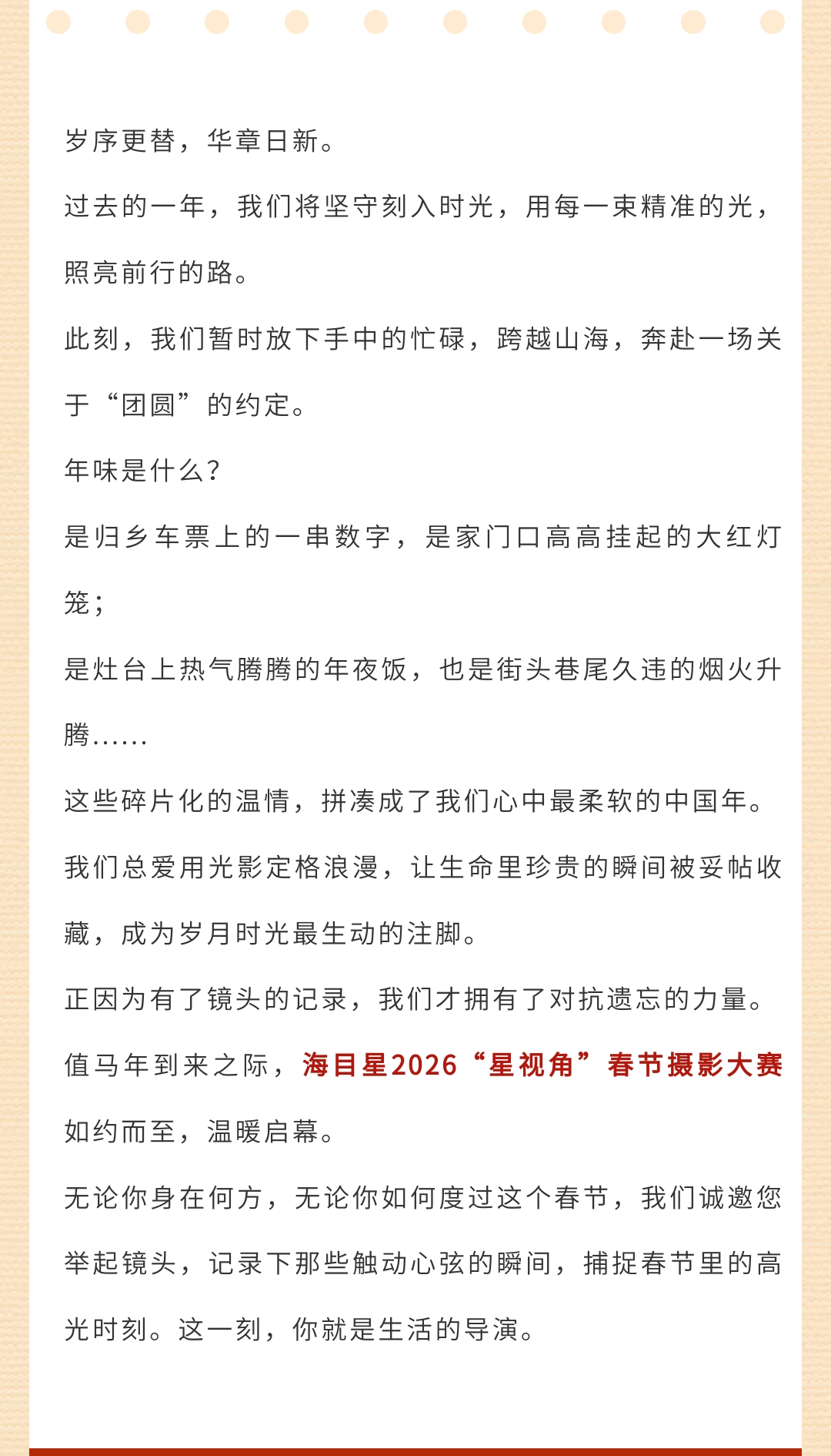 有獎征集|2026“星視角”春節攝影大賽開啟!尋找馬年最濃年味瞬間!