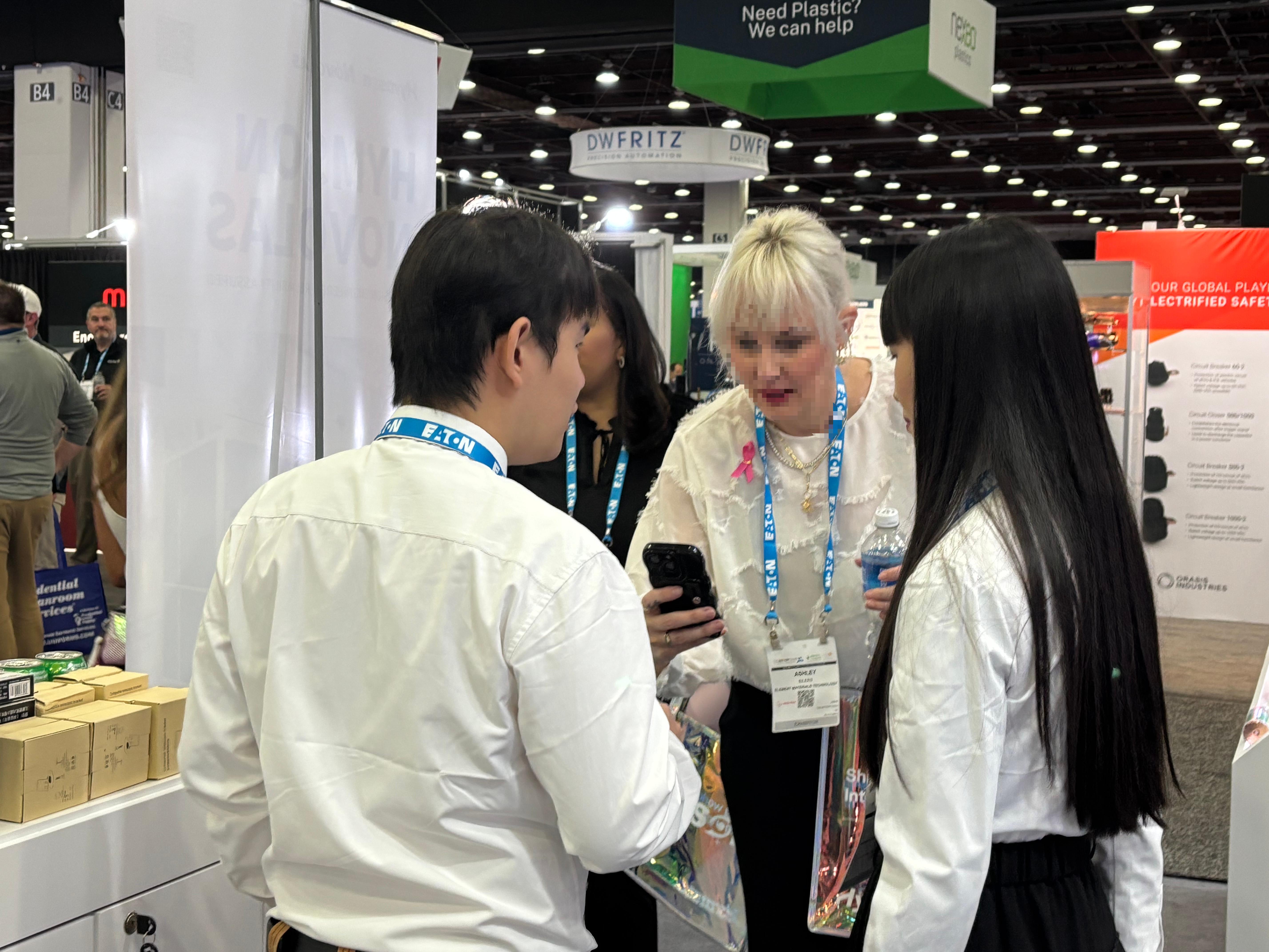 展會現場特設的樣品展示區,海目星攜激光模切、裁切、清洗、打孔、劃線、打標等六大類制片工藝以及各類激光焊接樣品驚艷亮相,直觀呈現高精度、超精細的工藝水準,讓北美客戶“零距離”感受技術實力,現場交流咨詢絡繹不絕。